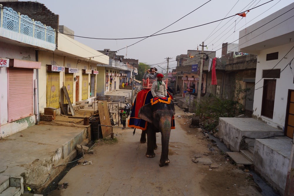 Note about our location: for the past week we have been living in Amer, near Jaipur with the people from couchsurfing. Here streets are filled with elephants, going from "elephant village" to Amer fort and back. We live in a store (yes =]) which is a 4 storey building (highest in town) in the very middle of this town with roof that privides spectacular view of everything, including fortress wall surrounding whole area. Our host himself owns about 30 elephants (per his info, each costs about 40 000 LVL).