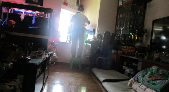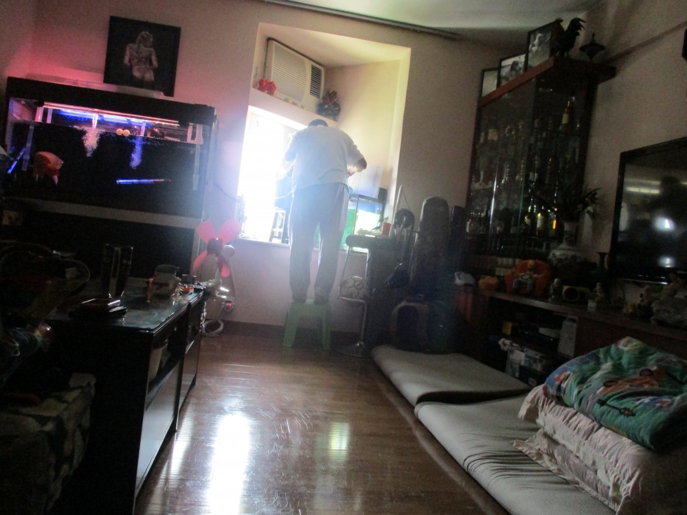 I'm staying with my workmate who's family lives in Hongkong, total 6 people and 2 dogs in standard honkoniese flat. Sleeping on mattress as there is not enough beds. Watching local TV shows. Half of the doors that goes out of flats in house is open and you can see how other people on the same flour are living.