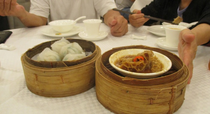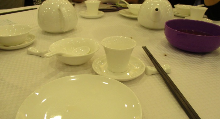 Tea house is place where people go and eat where dishes are placed in the center of round table. A little bit confusing that it's called tea house.