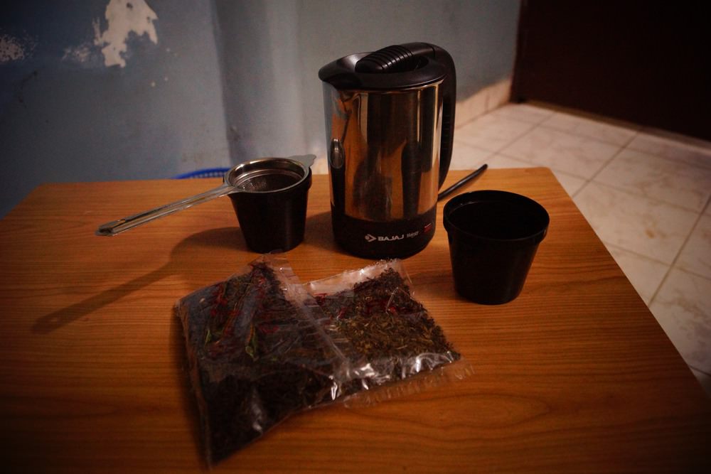 Yesterday we bought electric travel teapot (0.5L) and 2 packs of different (and good) Darjeeling tea 50g each. This is how much it cost us (each one of us had to pay only half):